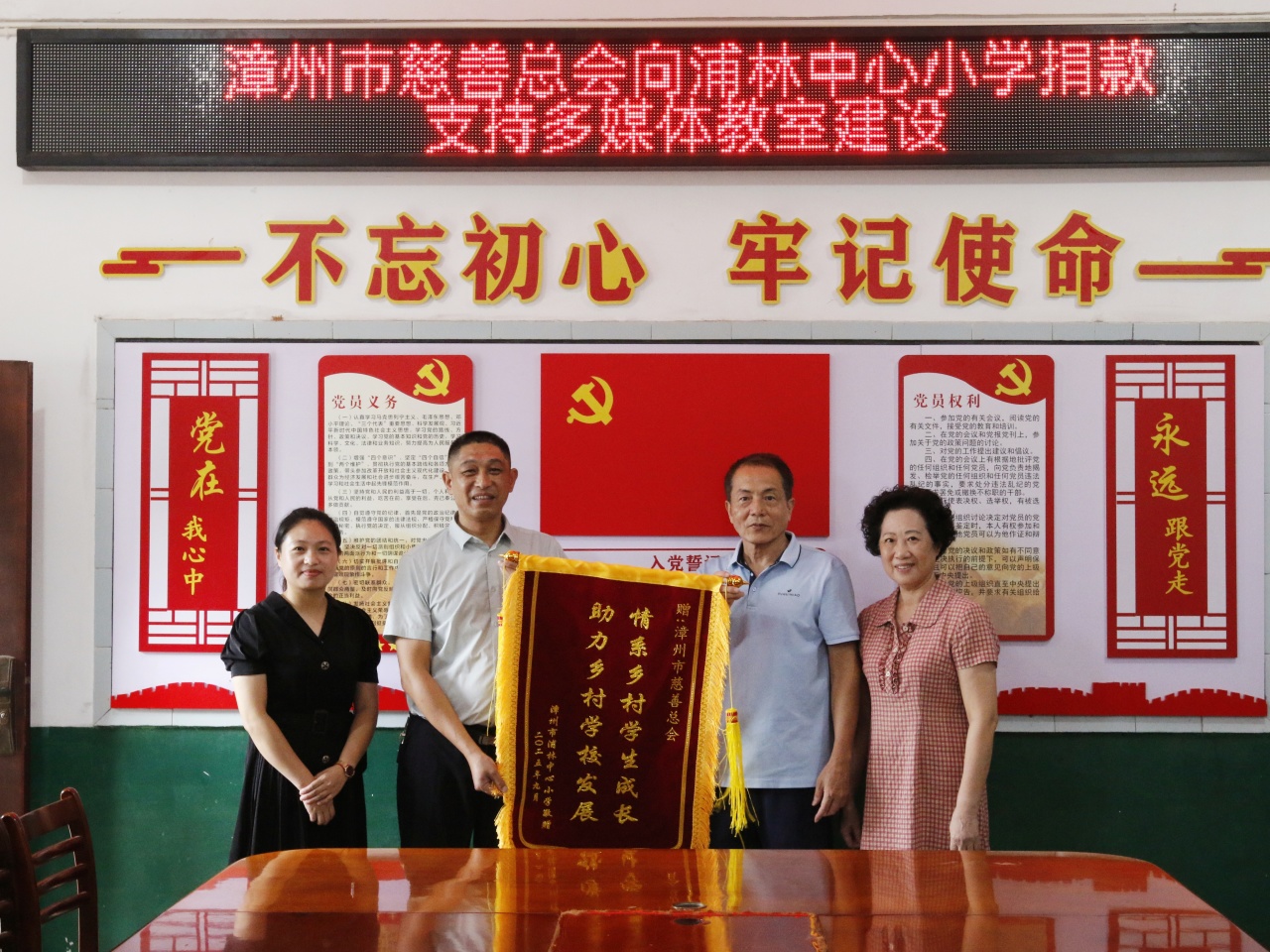 图为漳州市慈善总会向浦林中心小学捐款支持多媒体教室建设